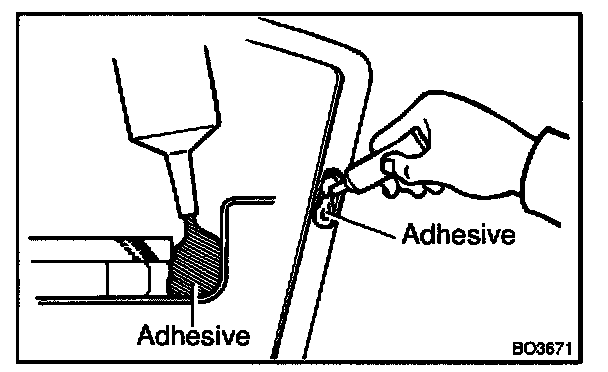 d. Hold the windshield glass in place securely with a protective tape or equivalent until the adhesive hardens.