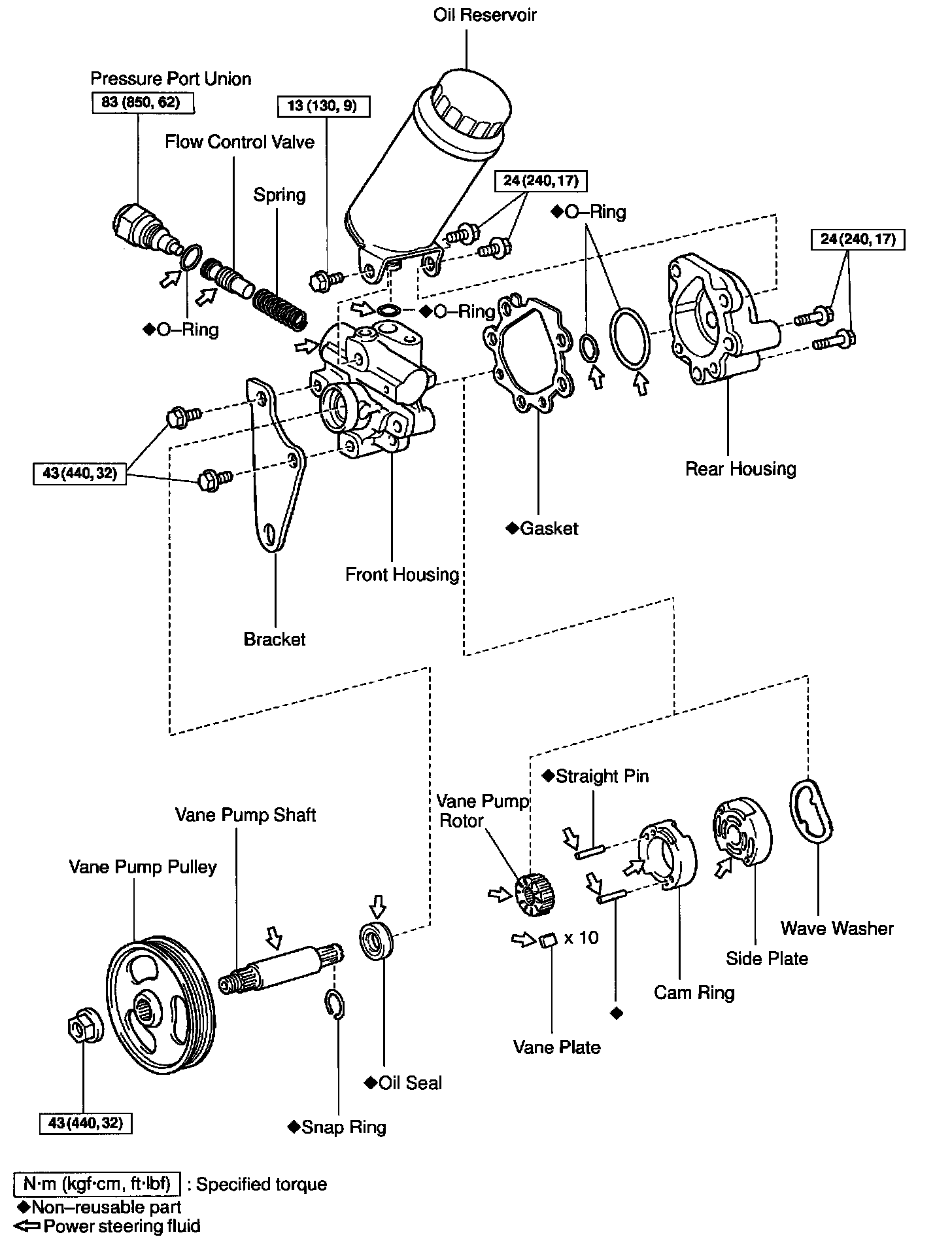 POWER STEERING VANE PUMP REPLACEMENT AND OVERHAUL W/ RELATED COMPONENTS