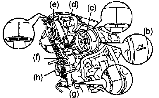 h) Install the timing belt to the No.1 idler pulley.