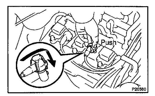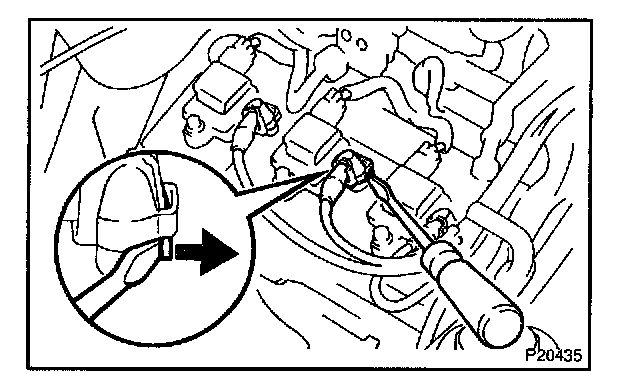 1. Using a screwdriver, lift up the lock claw and disconnect the holder from the ignition coils.