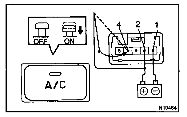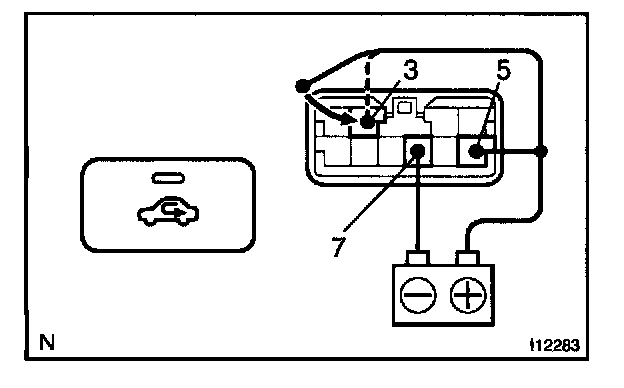 b. Connect the positive (+) lead from battery to terminal 4 and then check that the indicator dims.
