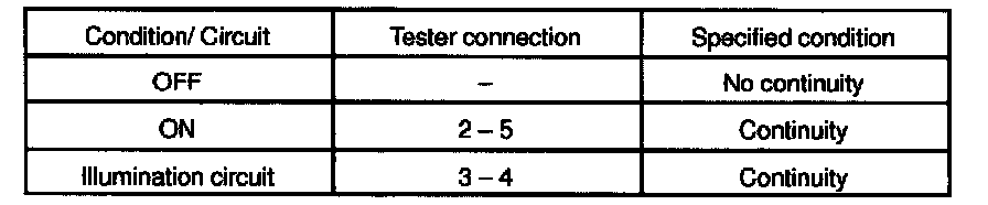 Illumination circuit: If continuity is not as specified, replace the bulb.