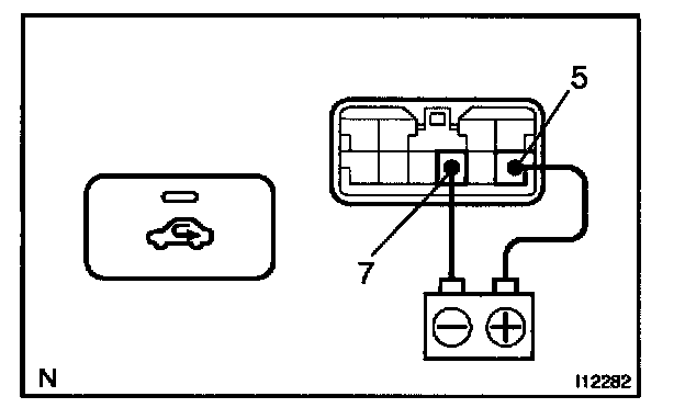 a. Connect the positive (+) lead from the battery to terminal 5 and the negative (-) lead to terminal 7.