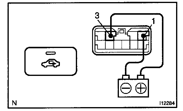 Connect the positive (+) lead from the battery to terminal 3 and the negative (-) lead to terminal 1, then check that illumination light up.