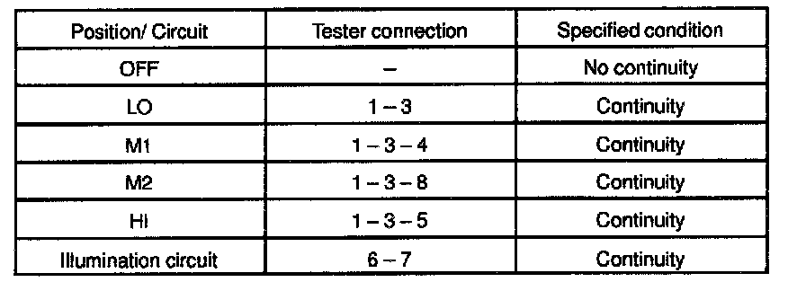7. INSPECT BLOWER SPEED CONTROL SWITCH CONTINUITY
