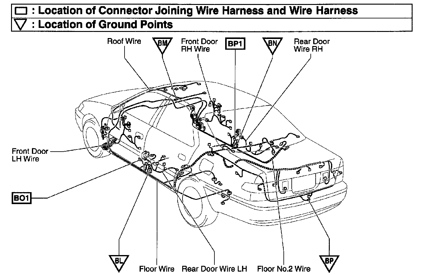 BO1 Rear Door Wire LH and Floor Wire (Under the Left Center Pillar)