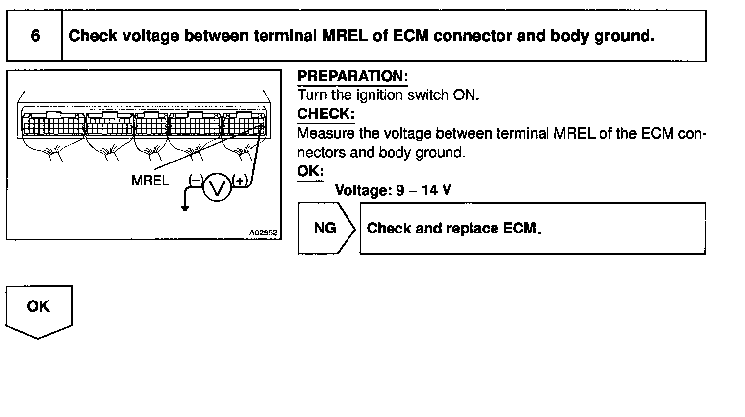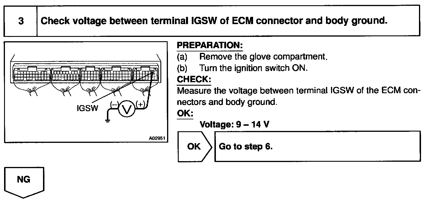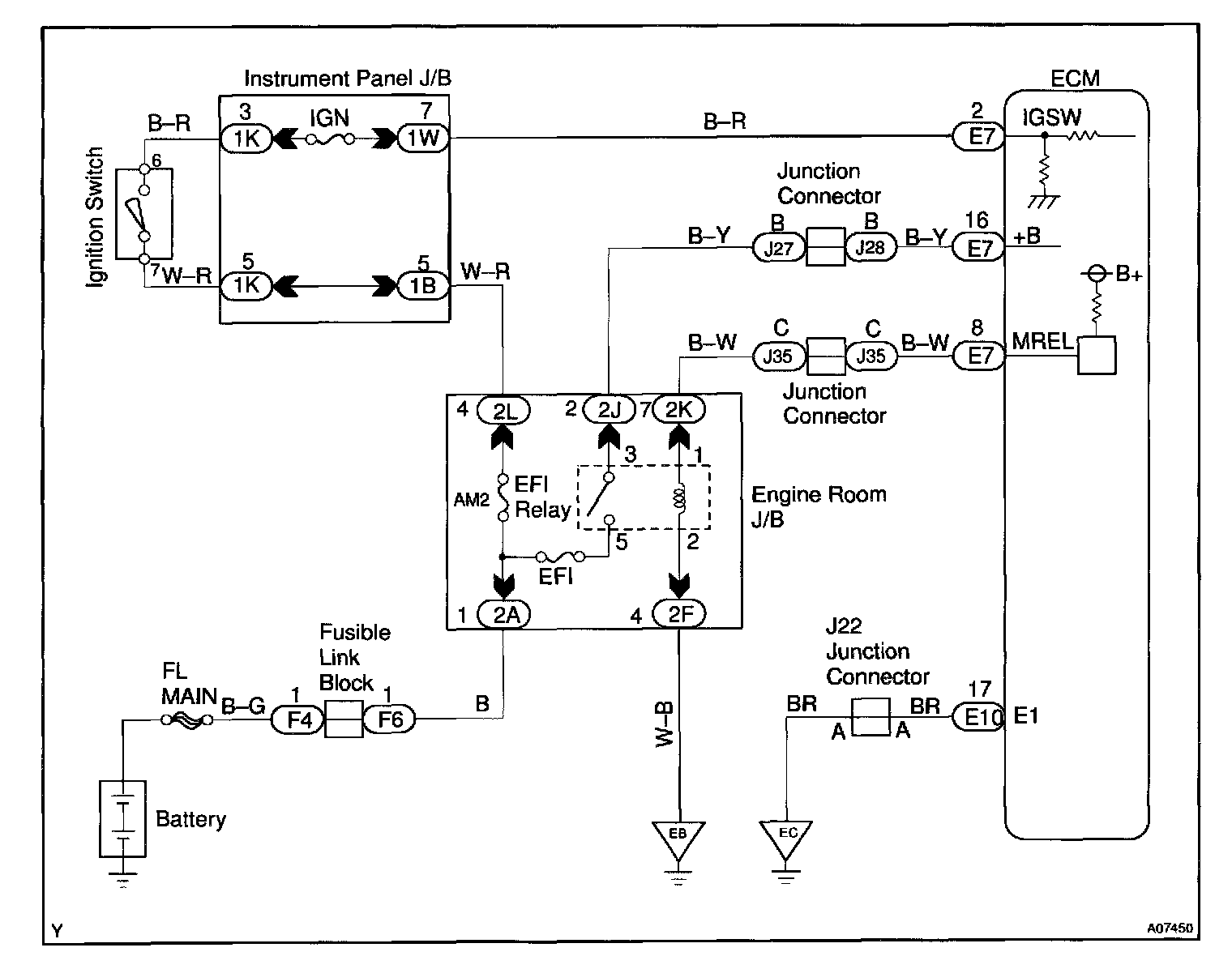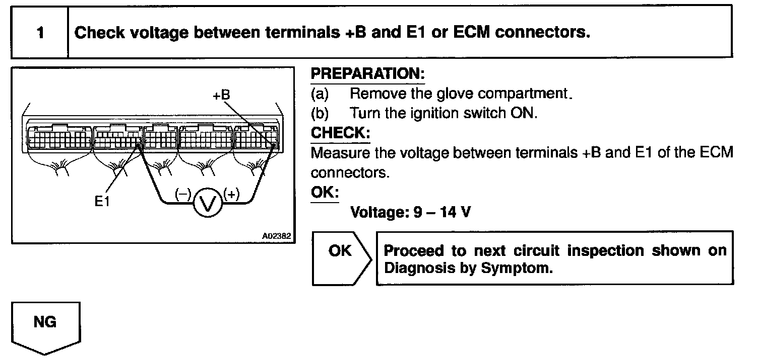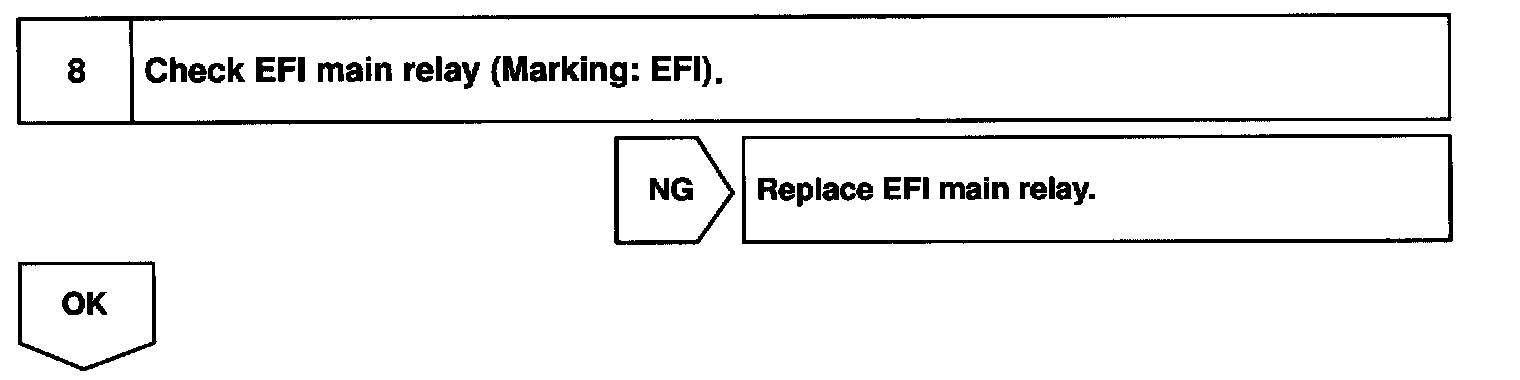 This signal causes current to flow to the coil, closing the contacts of the EFI, main relay and supplying power to terminals +B of the ECM.