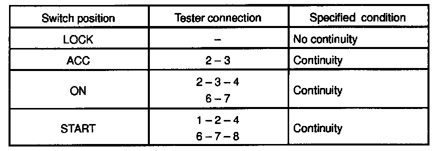 1. INSPECT IGNITION SWITCH CONTINUITY