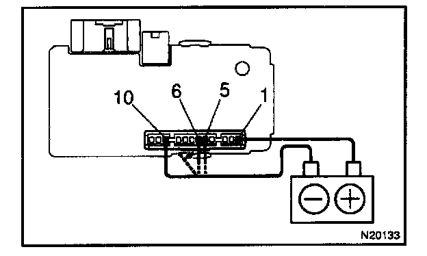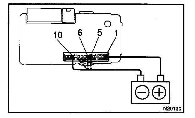 b. Connect the negative (-) lead from the battery to terminals 5, 6 and 10.