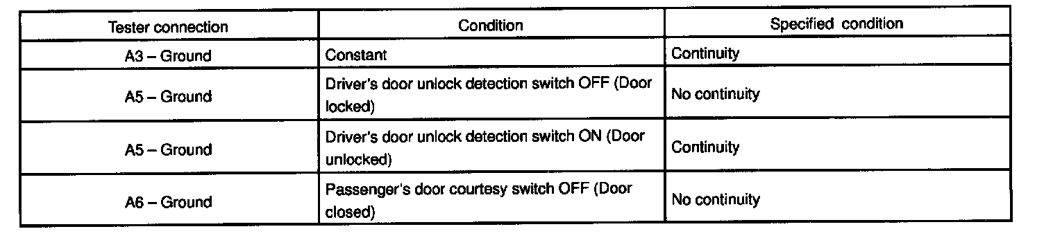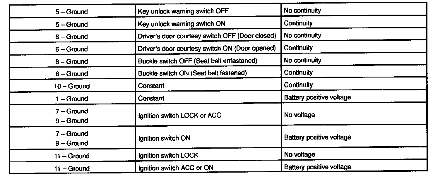 2. INSPECT KEY UNLOCK WARNING SWITCH CONTINUITY
