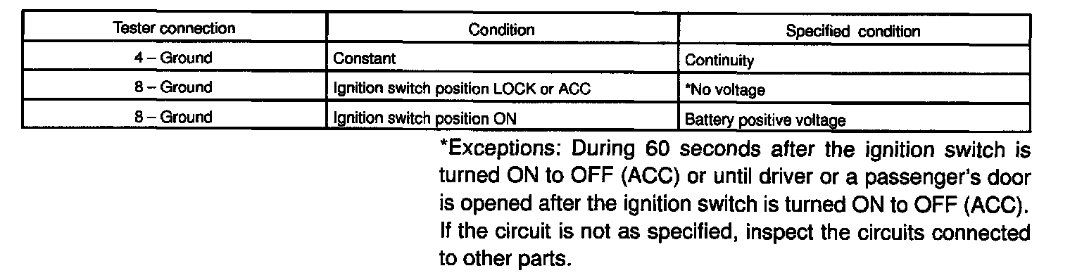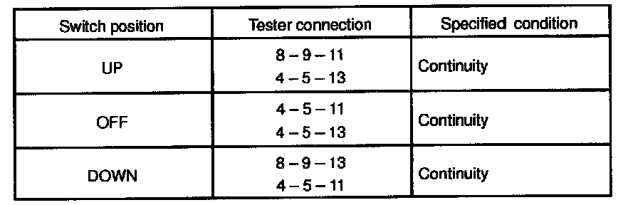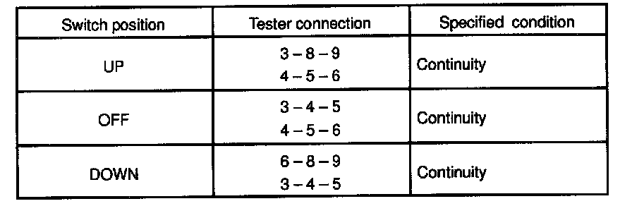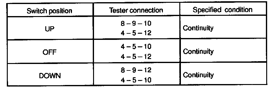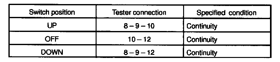 INSPECT POWER WINDOW SWITCH CONTINUITY