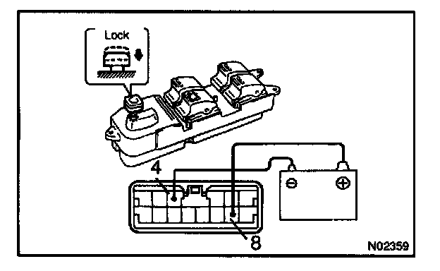 c. Set the window lock switch to the lock position, check that all the passenger's power window switch illuminations go out.