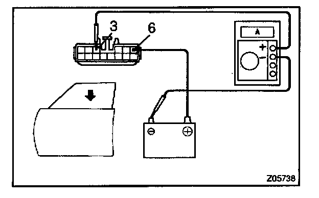 b. Connect the positive (+) lead from the ammeter to terminal 3 on the wire harness side connector and the negative (-) lead to negative terminal of the battery.