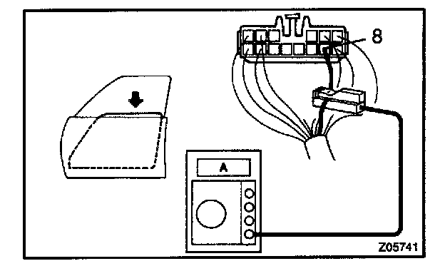 b. Attach a current-measuring probe to terminal 8 of the wire harness.