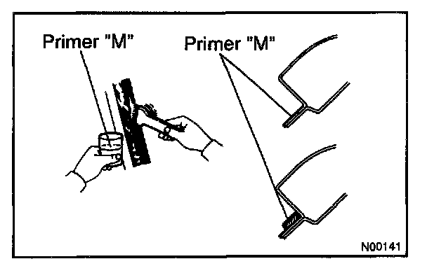NOTE: Let the primer coating dry for 3 minutes or more. Do not coat Primer M to the adhesive. Do not keep any of the opened Primer M for later use.