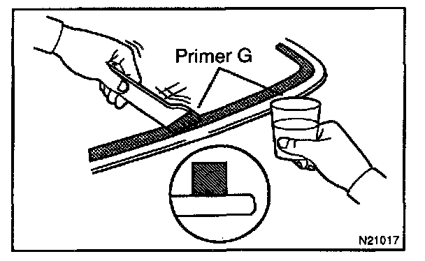 a. Using a brush or a sponge, coat the edge of the glass and the contact surface with Primer G.