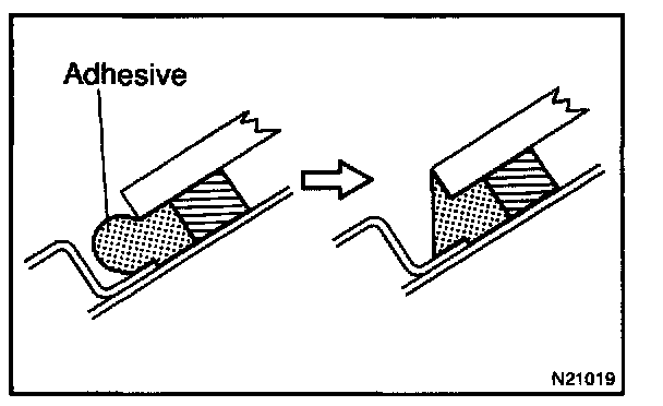 Sealant may cause the moulding to stick to the glass. If necessary, separate from the glass using a knife.