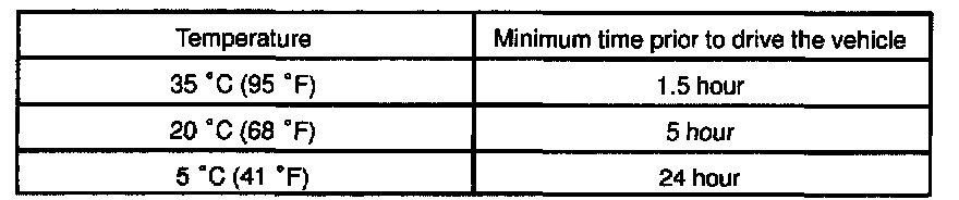 NOTE: Take care not to drive the vehicle during the time described in the chart.