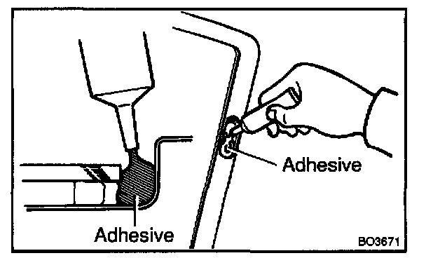 d. Hold the windshield glass in place securely with a protective tape or equivalent until the adhesive hardened.