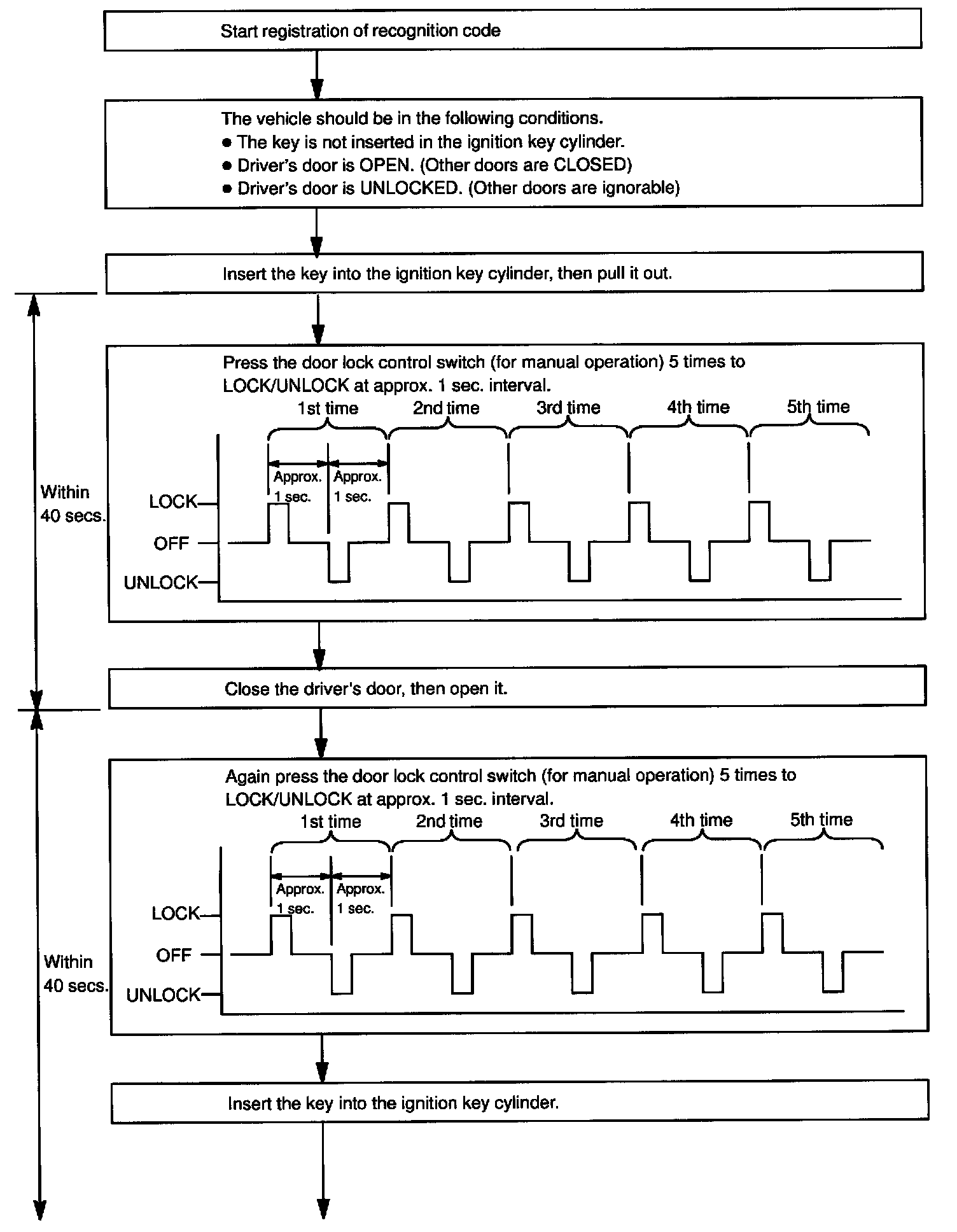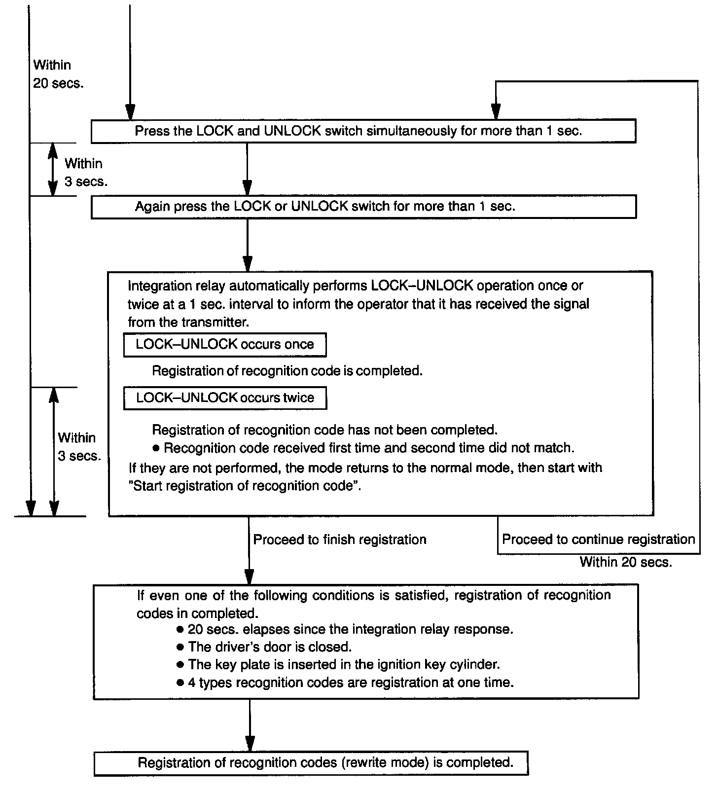 b. Follow the chart on the following page to register the transmitter recognition code at the wireless door lock control receiver.