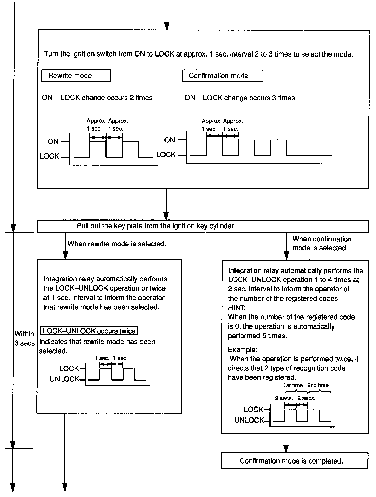 - The confirmation mode is for confirming how many recognition codes are already registered before you rewrite recognition codes.