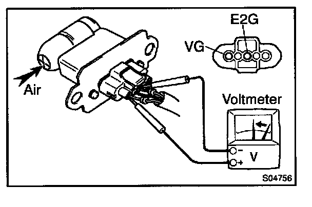 c. Using a voltmeter, connect the positive (+) tester probe to terminal VG, and negative (-) tester probe to terminal E2G.