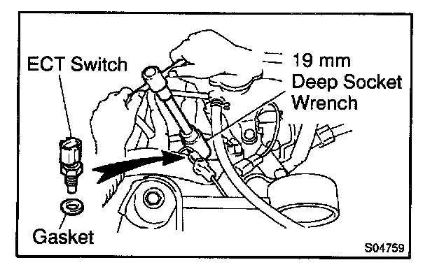 b. Using a 19 mm deep socket, install the ECT sensor.