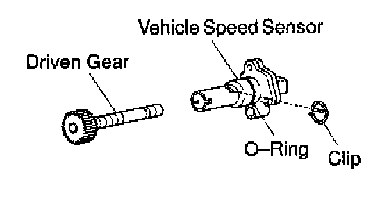 b. Remove the clip and driven gear from the vehicle speed sensor.