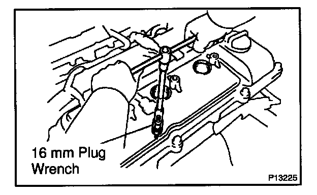 e. Using a 16 mm plug wrench, remove the 6 spark plugs from the RH and LH cylinder heads.