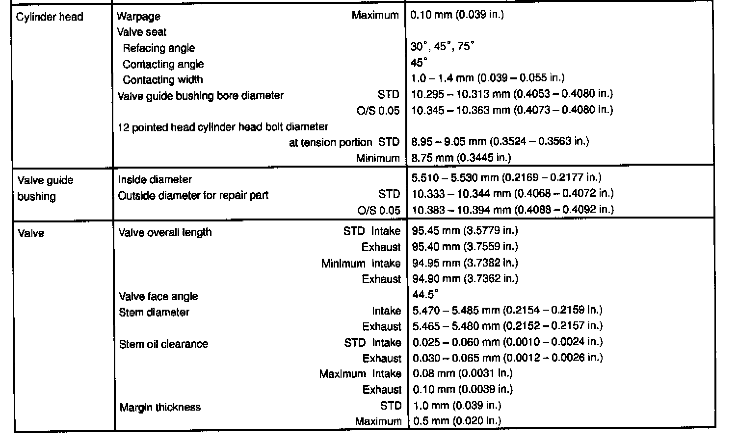 1MZ-FE Engine Mechanical Data: