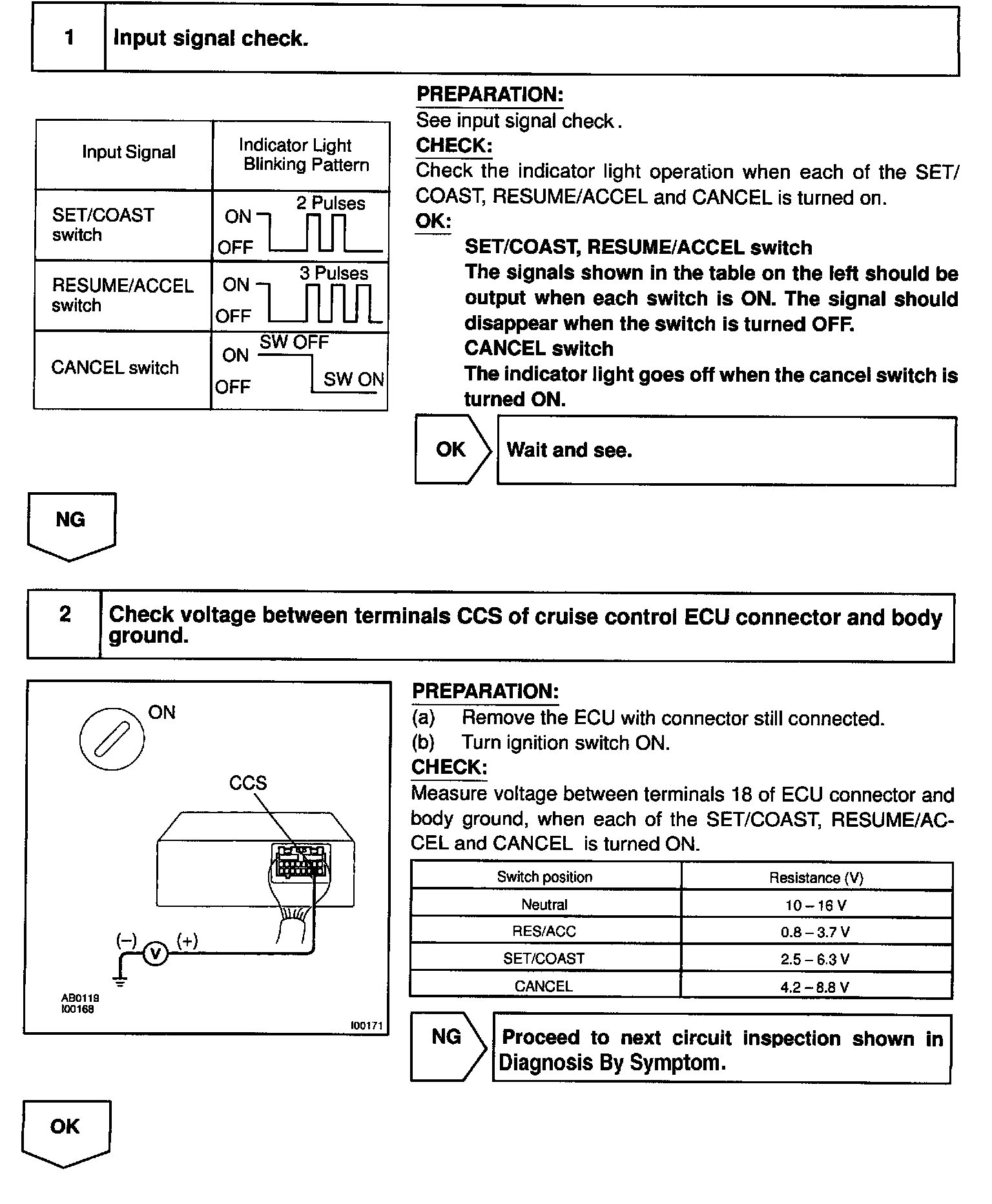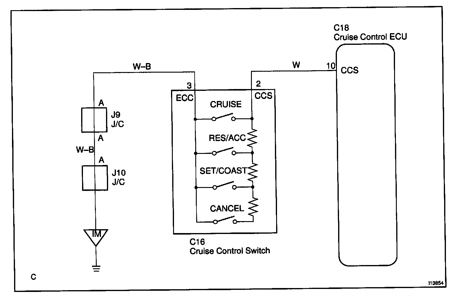 This circuit carries the SET/COAST, RESUME/ACCEL and CANCEL signals (each voltage) to the ECU.