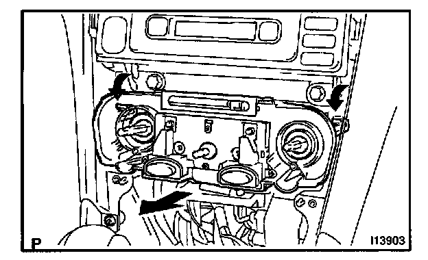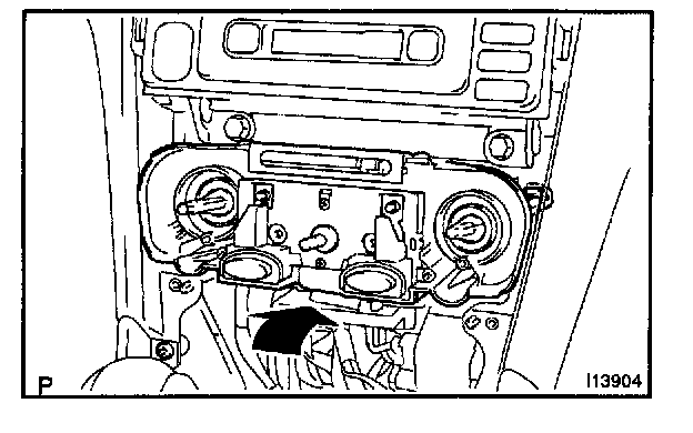 Release the 2 claws and pull out the A/C control assembly, then disconnect the connector.