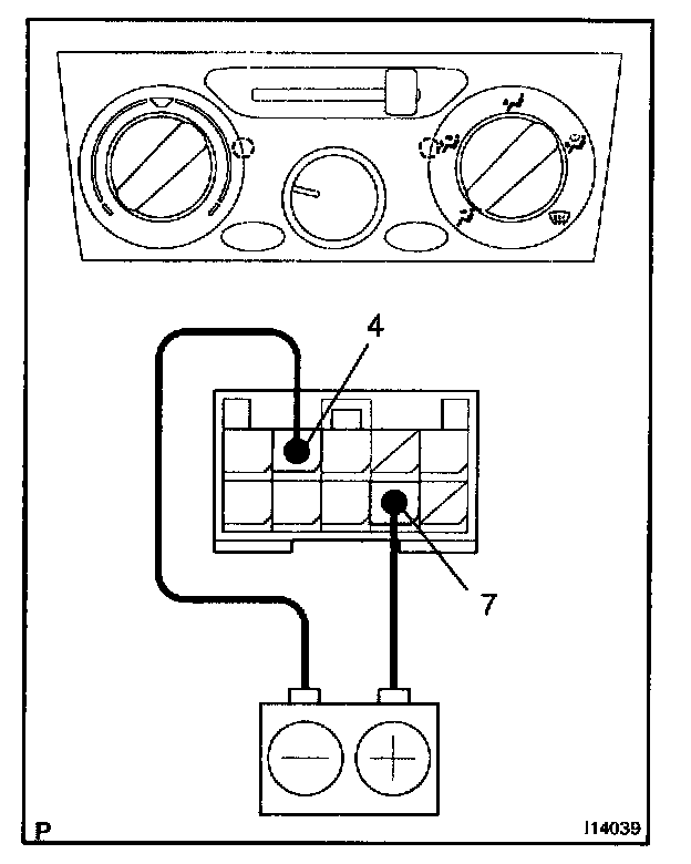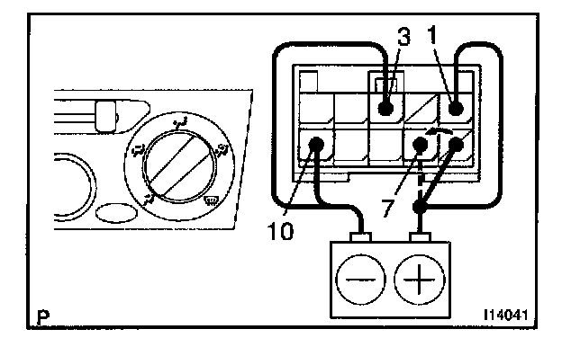 b. Connect the positive (+) lead from battery to terminal 7 and then check that the indicator dims.