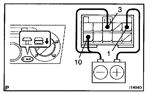 a. Connect the positive (+) lead from the battery to terminal 1 and the negative (-) lead to terminal 3 and 10 while press the switch.