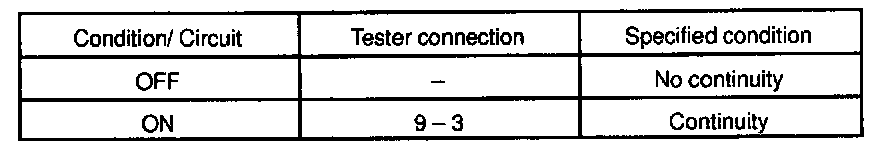 If continuity is not as specified, replace the switch.