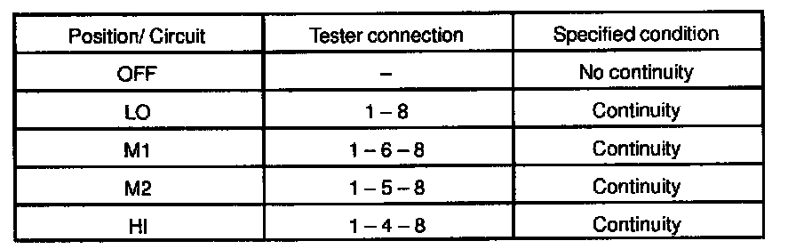 6. INSPECT BLOWER SPEED CONTROL SWITCH CONTINUITY
