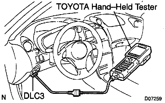 2. CONNECT TOYOTA HAND-HELD TESTER OR OBDII SCAN TOOL