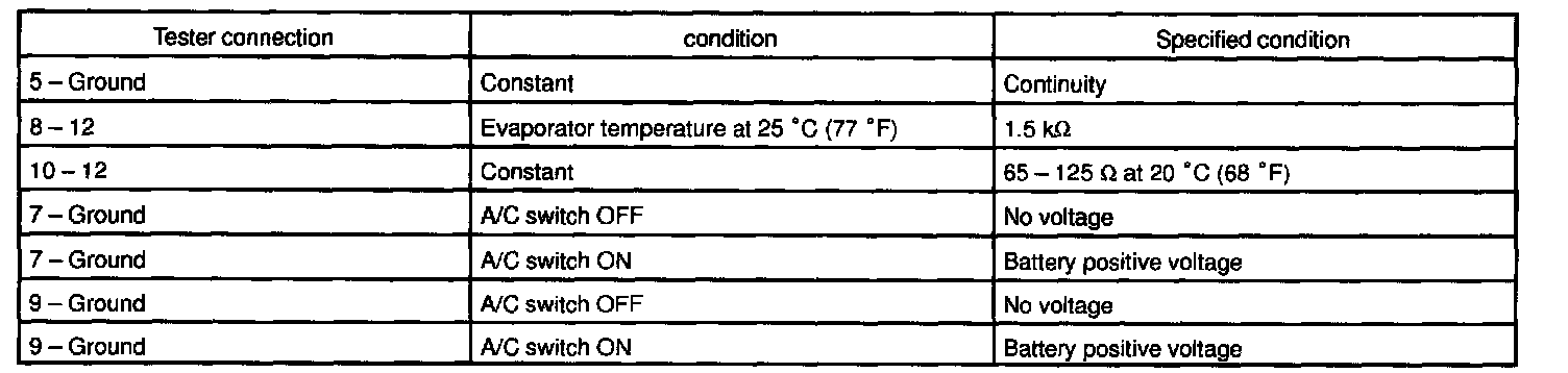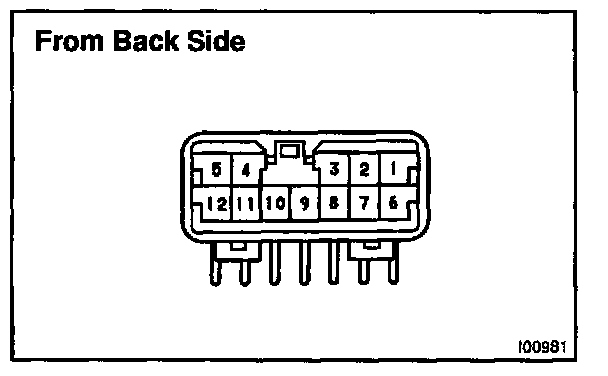 c. Connect the connector to amplifier and inspect wire harness side connector from the back side, as shown in the chart below.