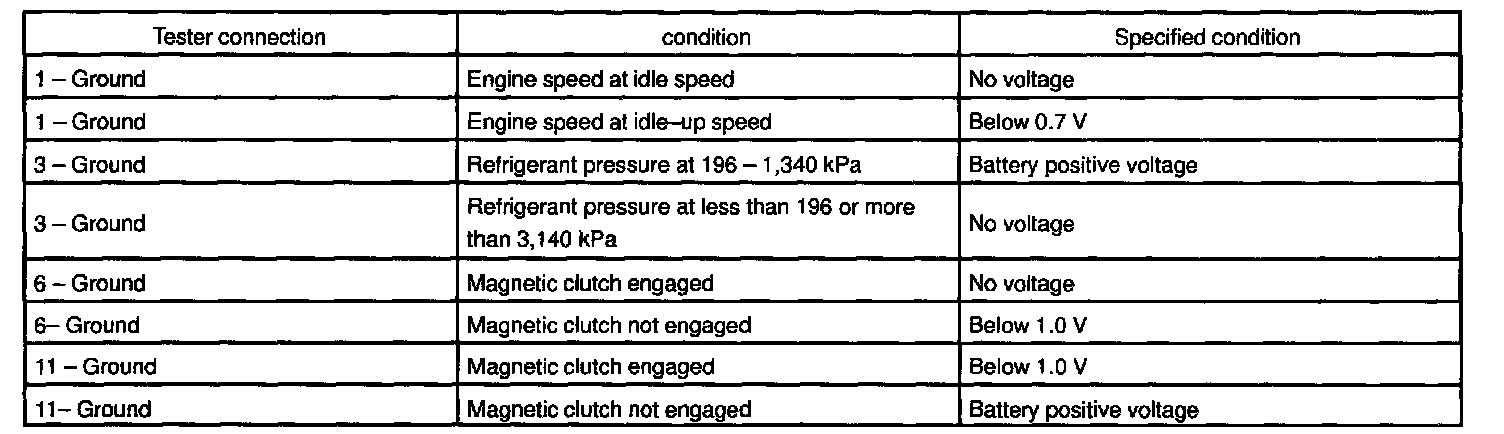b. Disconnect the connector and inspect the connector on wire harness side, as shown in the chart below.
