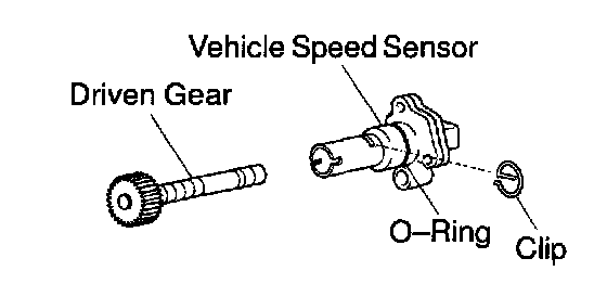 b. Remove the clip and the speedometer driven gear from the vehicle speed sensor.