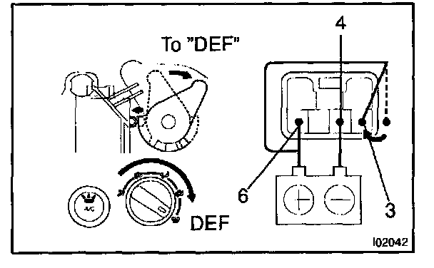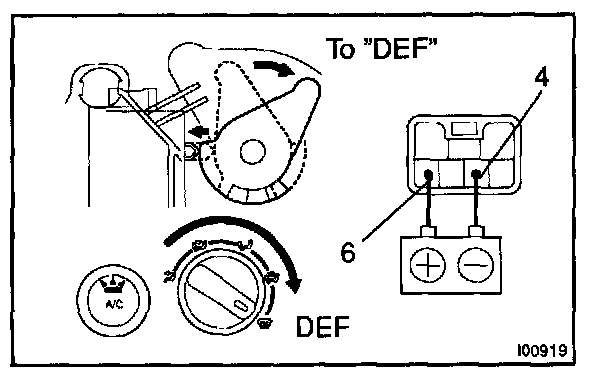 b. Turn the mode dial to the "DEF" position and check that the A/C indicator lights up.