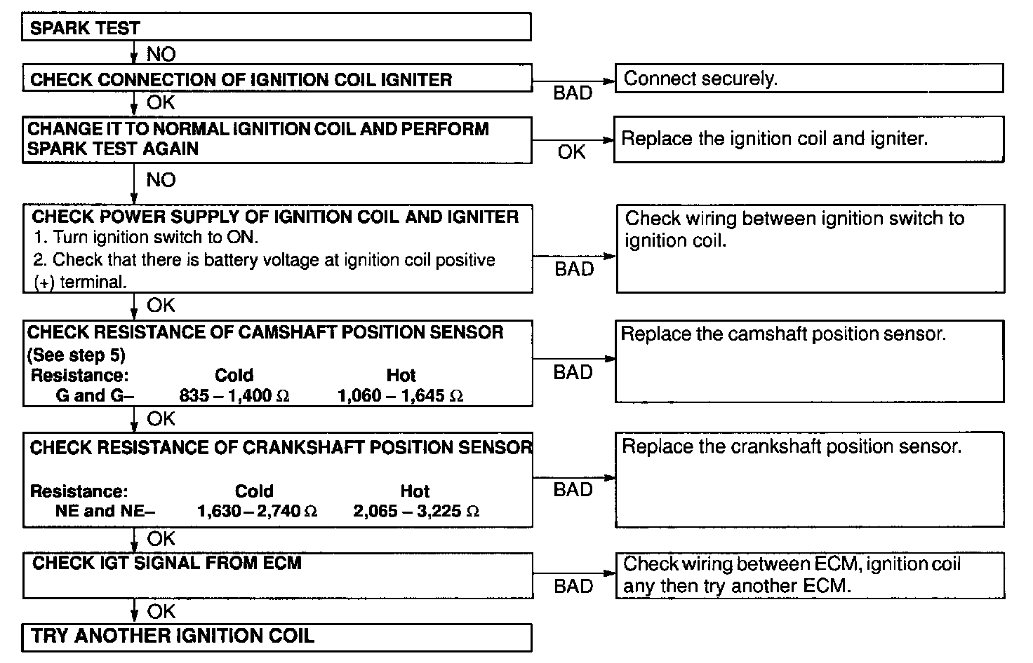 INSPECT IGNITION COIL WITH IGNITER AND SPARK TEST