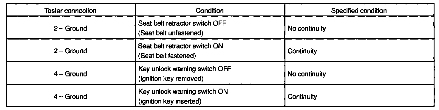 2. INSPECT KEY UNLOCK WARNING SWITCH CONTINUITY