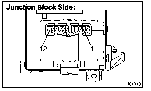 b. Remove the integration relay from the instrument panel junction block and inspect the connectors on the junction block side.