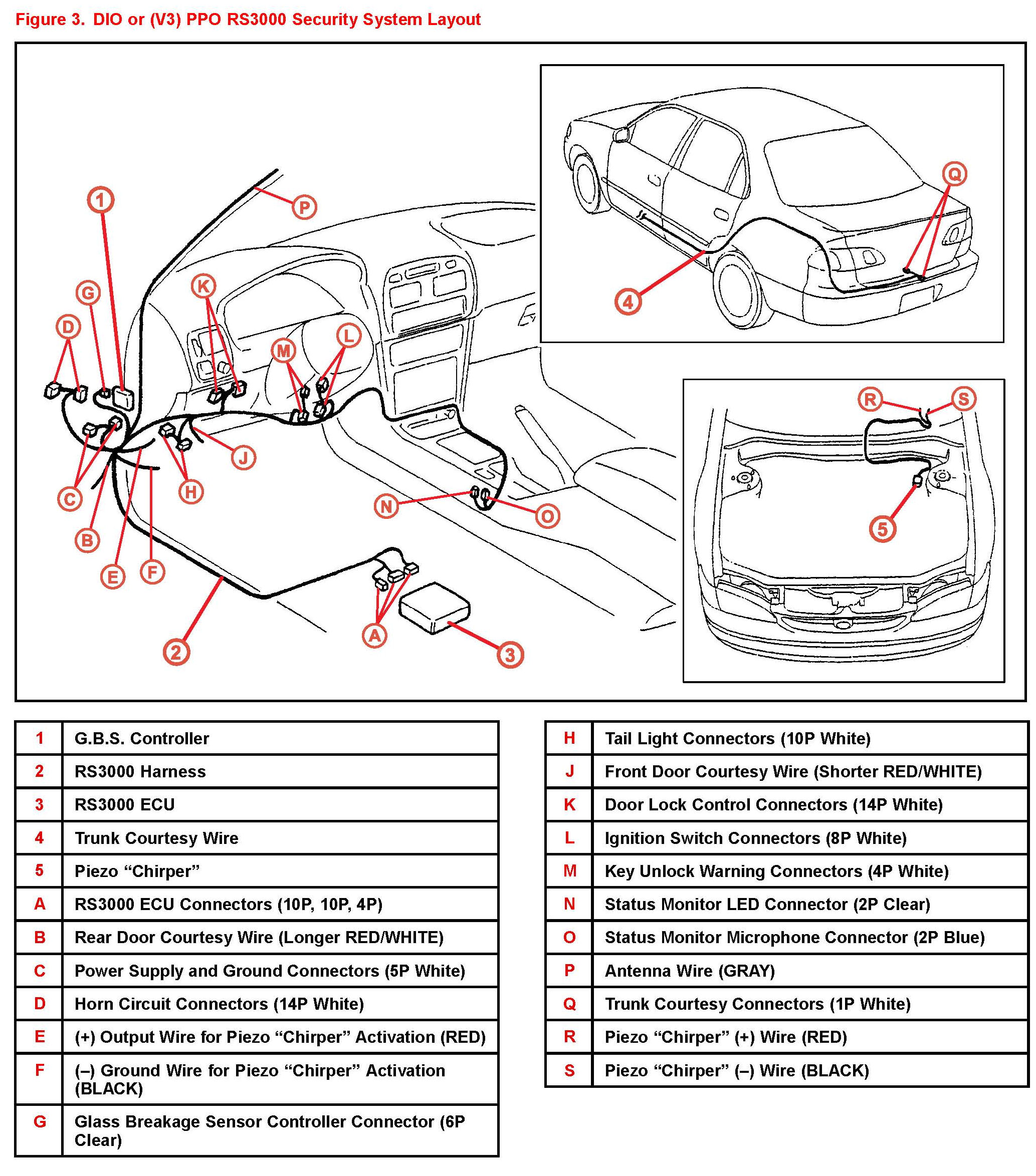 Certain 1999 - 2002 model year TMMC built Corolla vehicles are equipped with a factory installed RS3000 security system. This option is in addition to the Dealer Installed Option (DIO) and Post Production Option (PPO) and has identical functions and features as these existing options. For service related purposes this bulletin describes the procedures to identify whether vehicles are equipped with a factory installed or a DIO/PPO system.