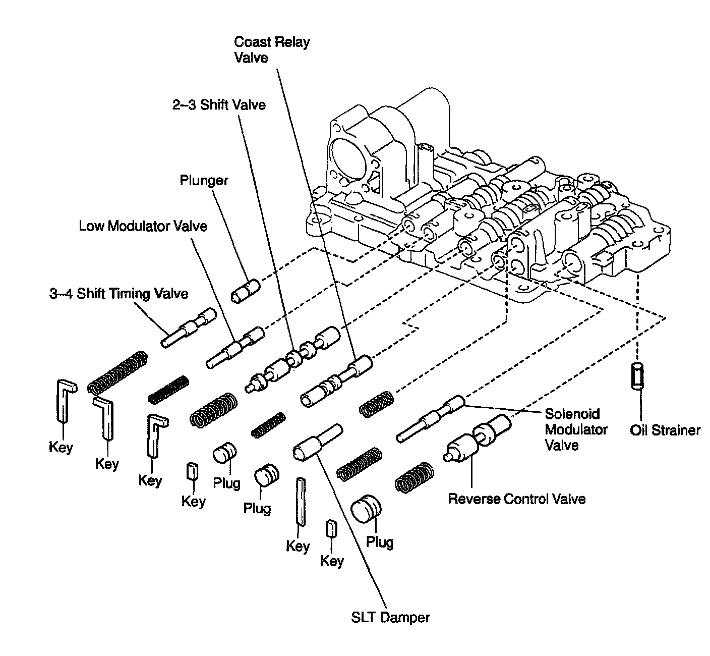 UPPER VALVE BODY LOCATIONS W/ RELATED COMPONENTS