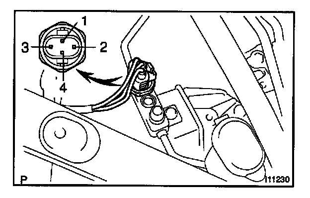 1. Connect the positive (+) lead from the ohmmeter to terminal 4 and the negative (-) lead to terminal 1.