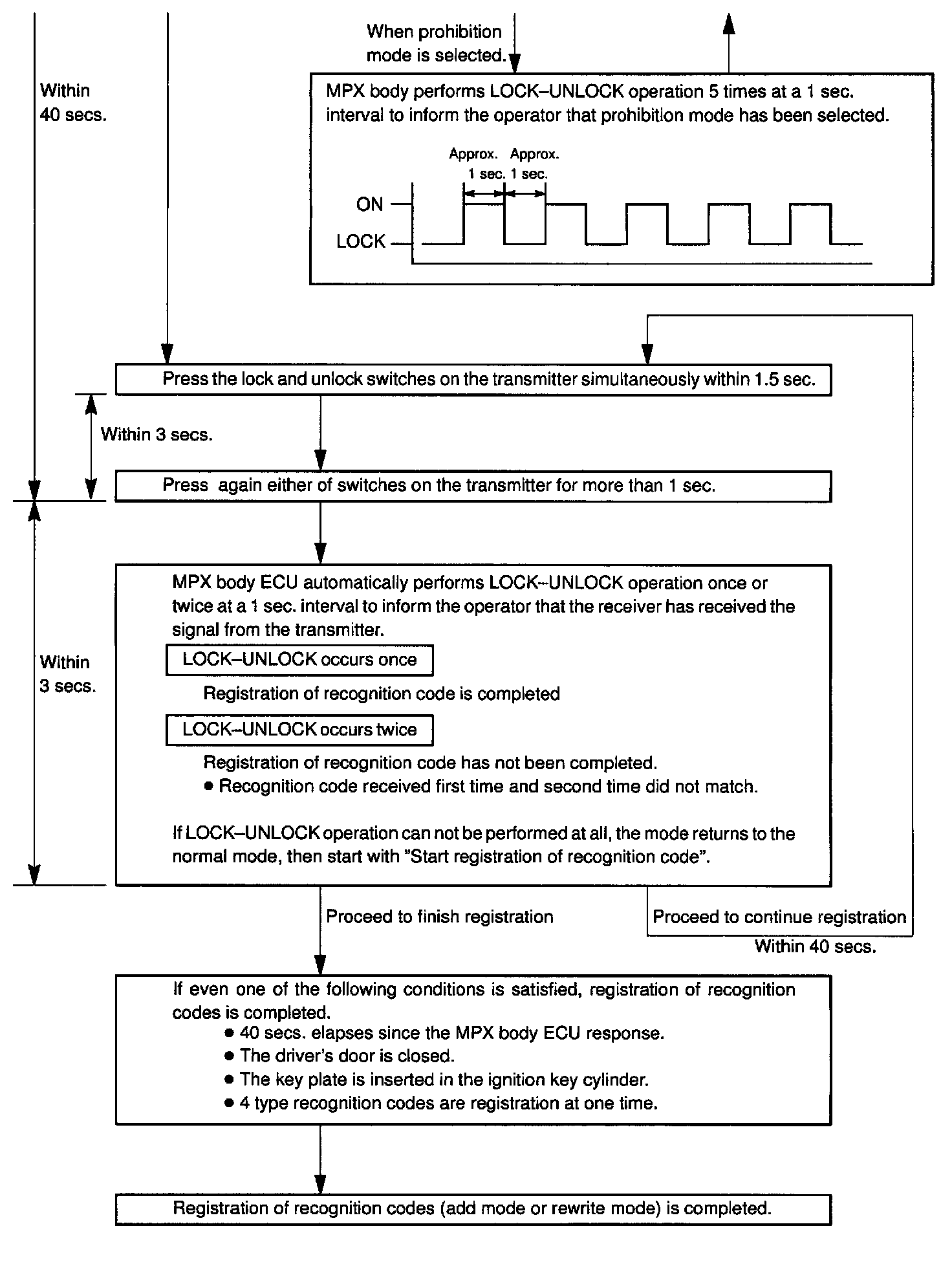 b. Follow the chart to register the transmitter recognition code at the wireless door lock control receiver.