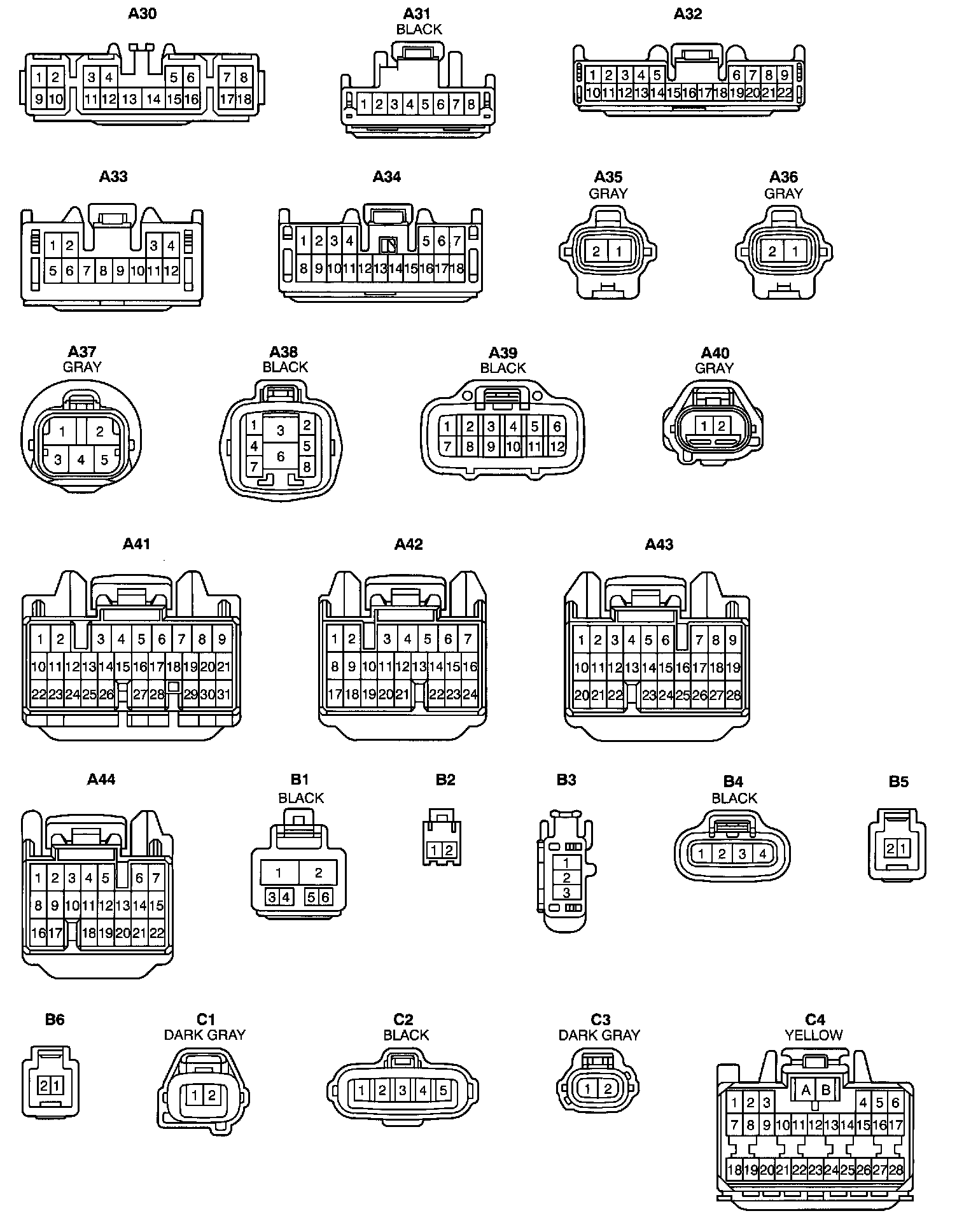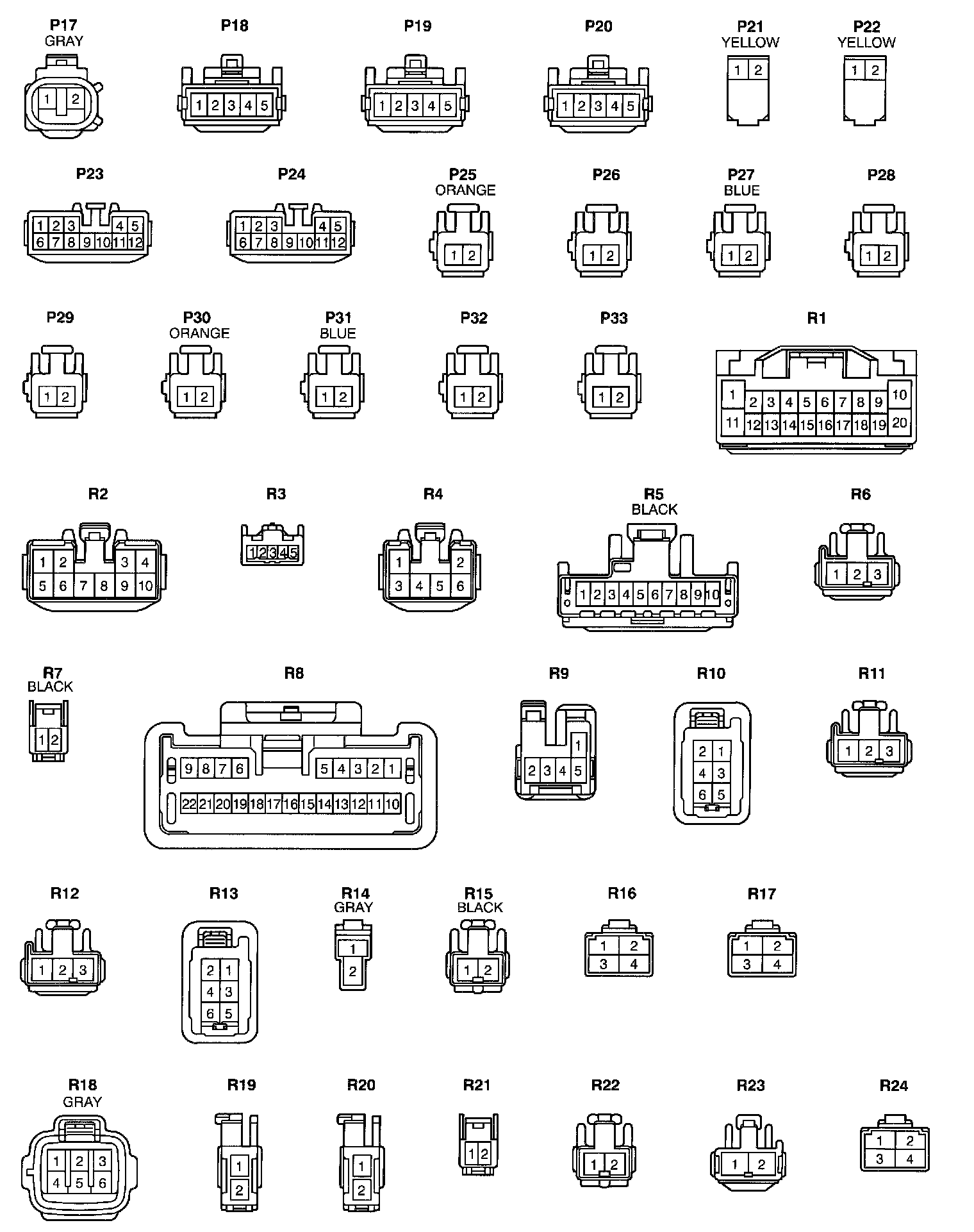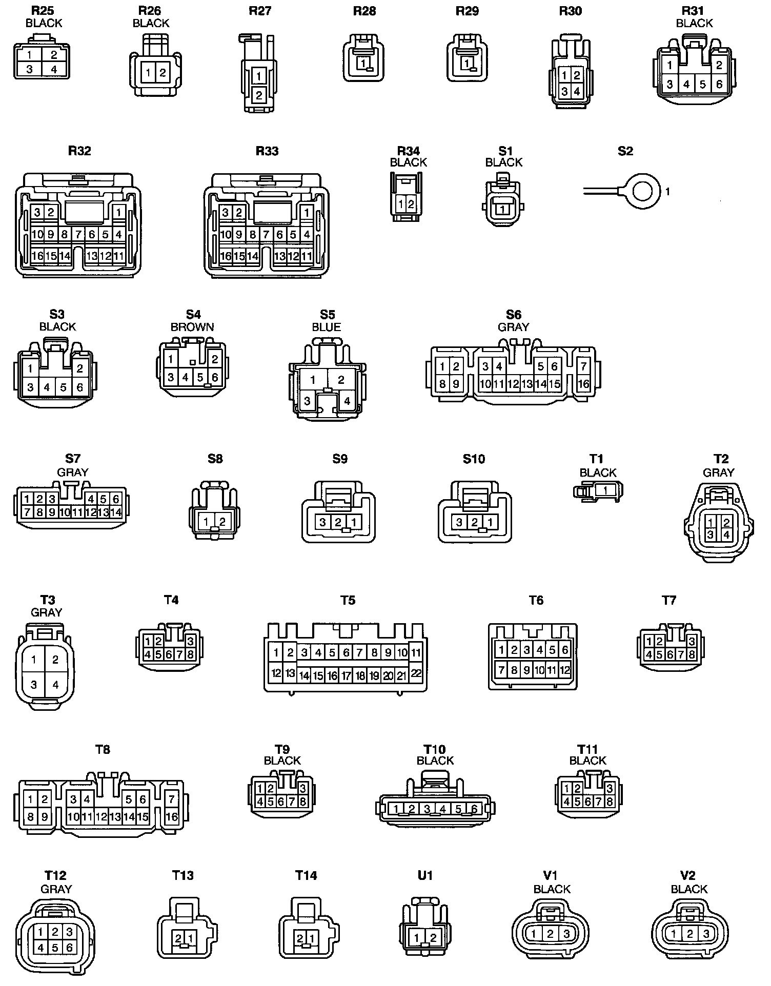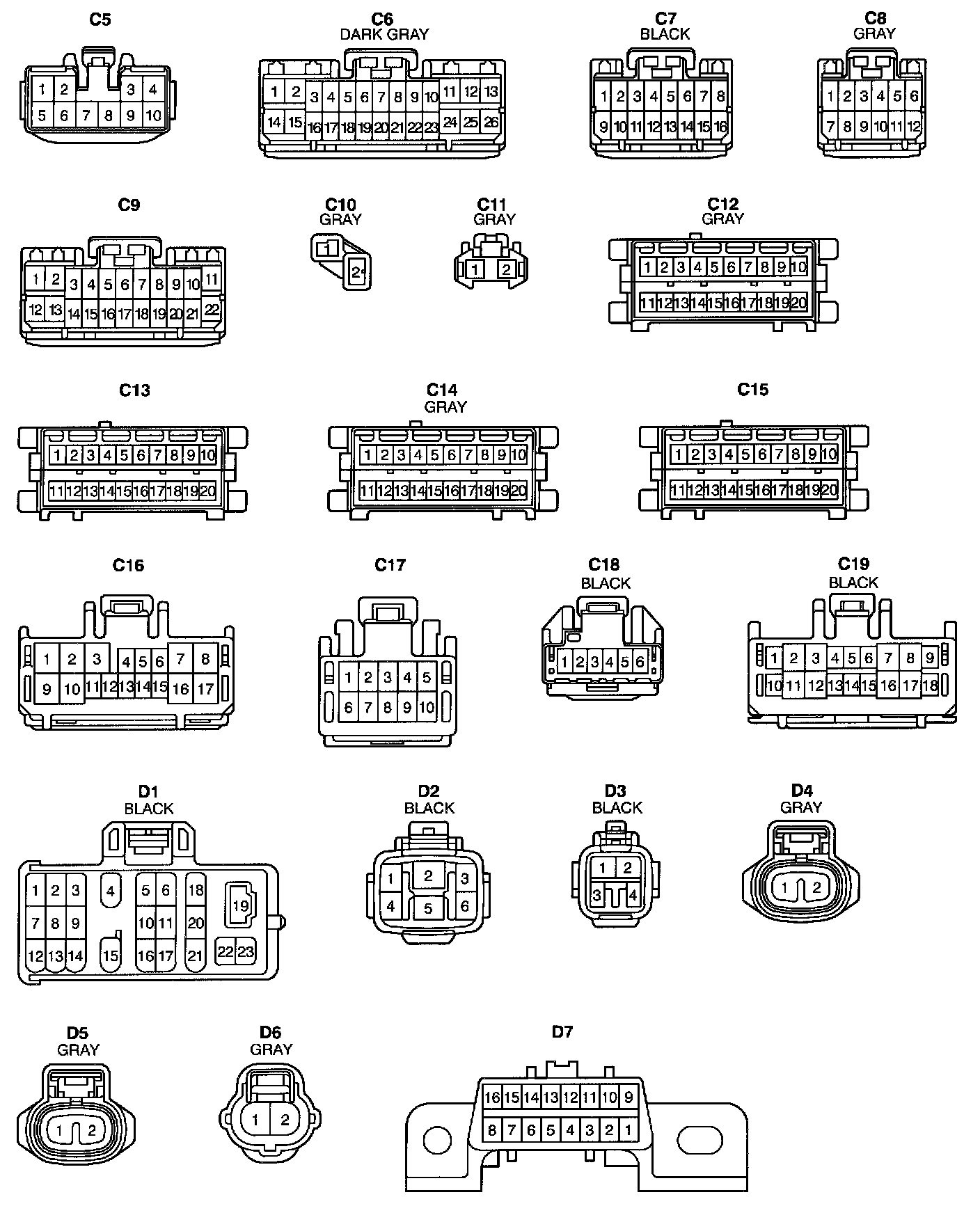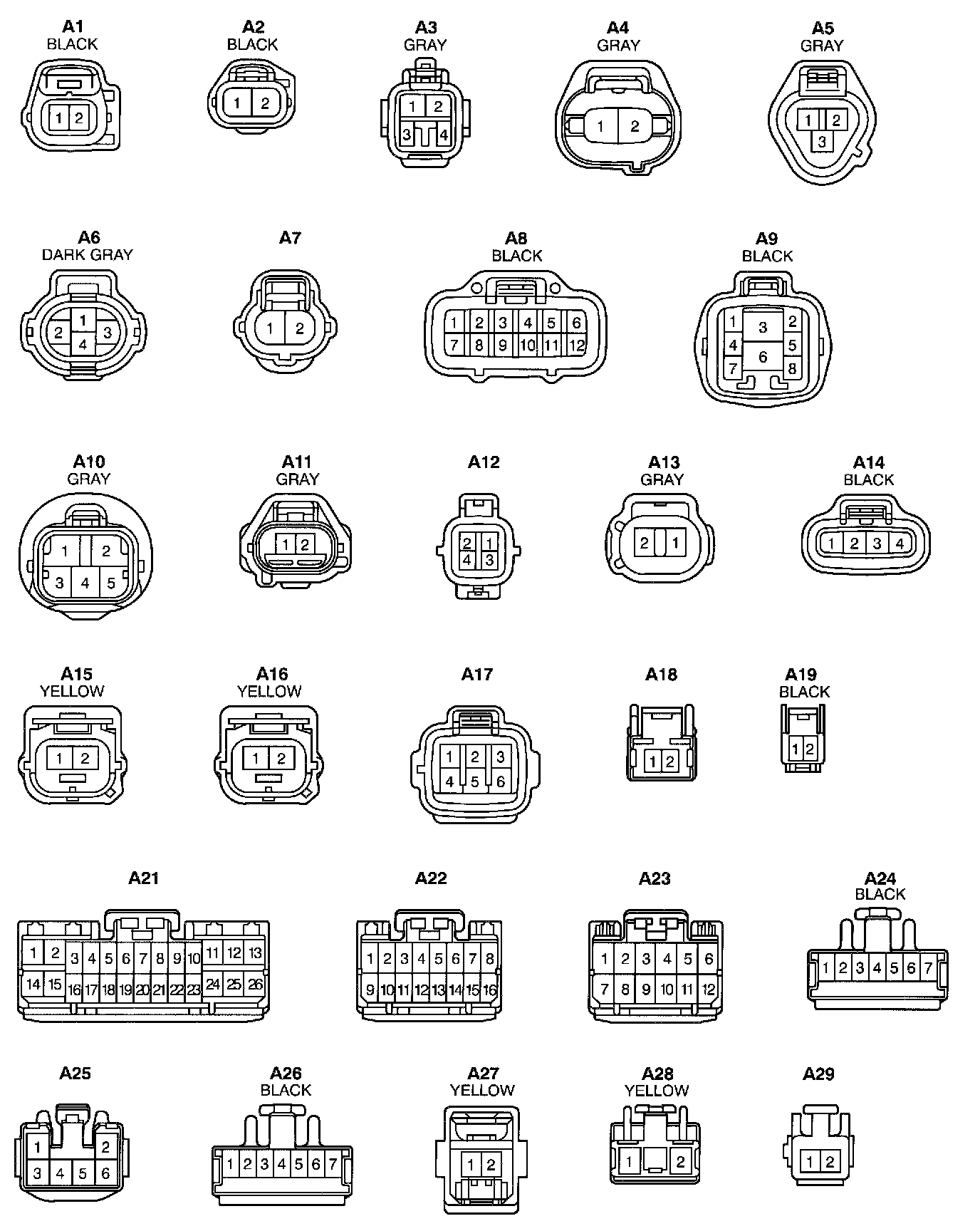 NOTE: Not all of the above part numbers of the connector are established for the supply. In case of ordering a connector or terminal with wire please confirm in advance if there is supply for it using "Parts Catalog News" (published by Parts Engineering Administration Dept.).