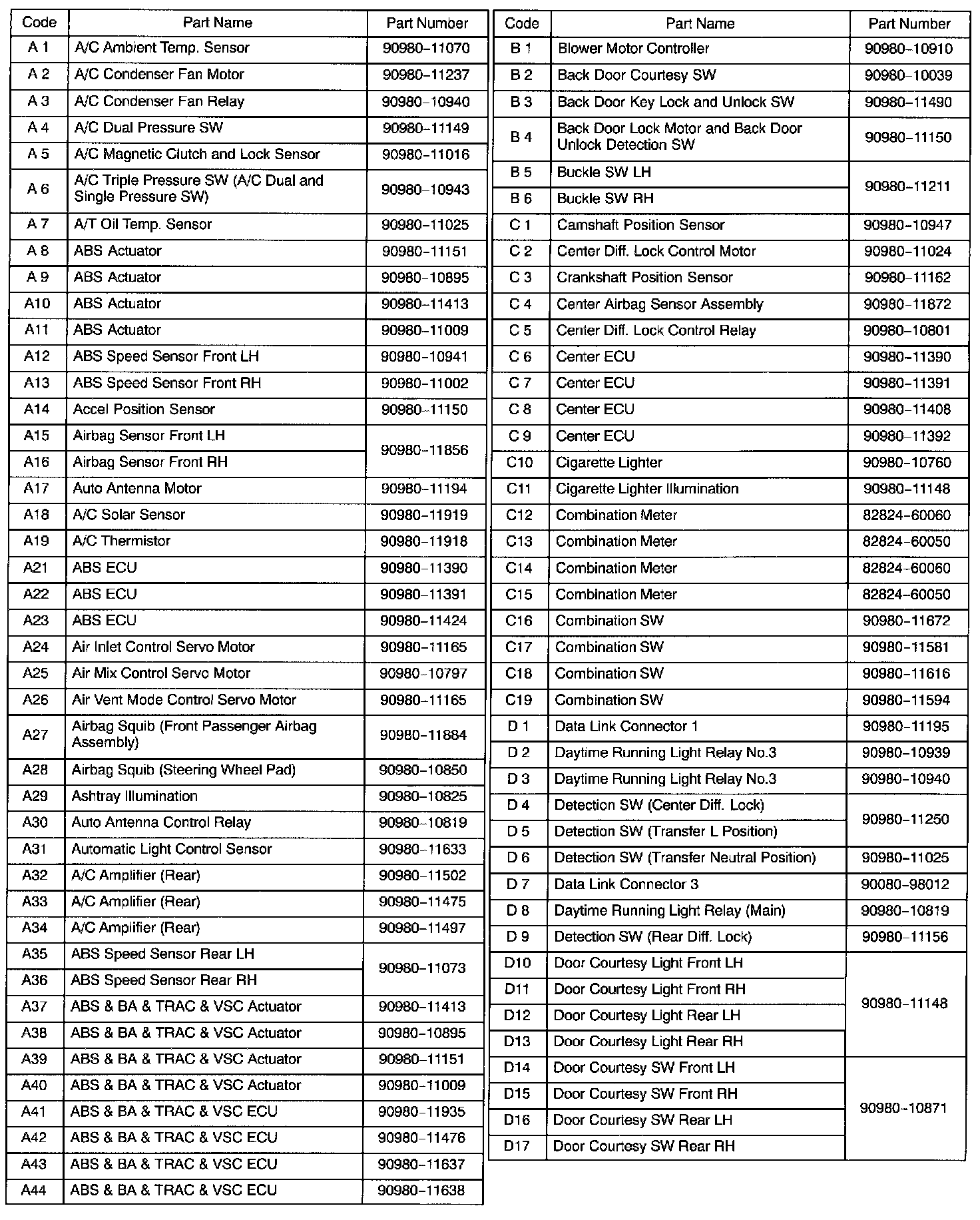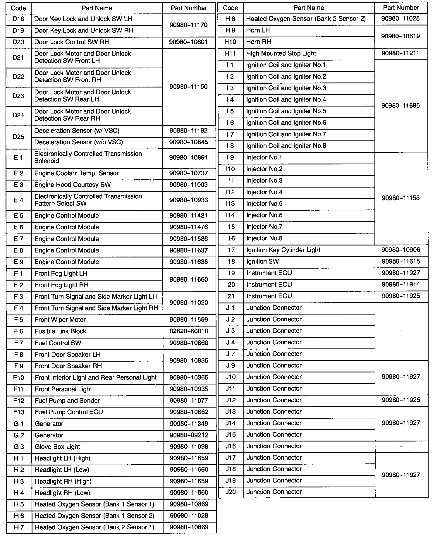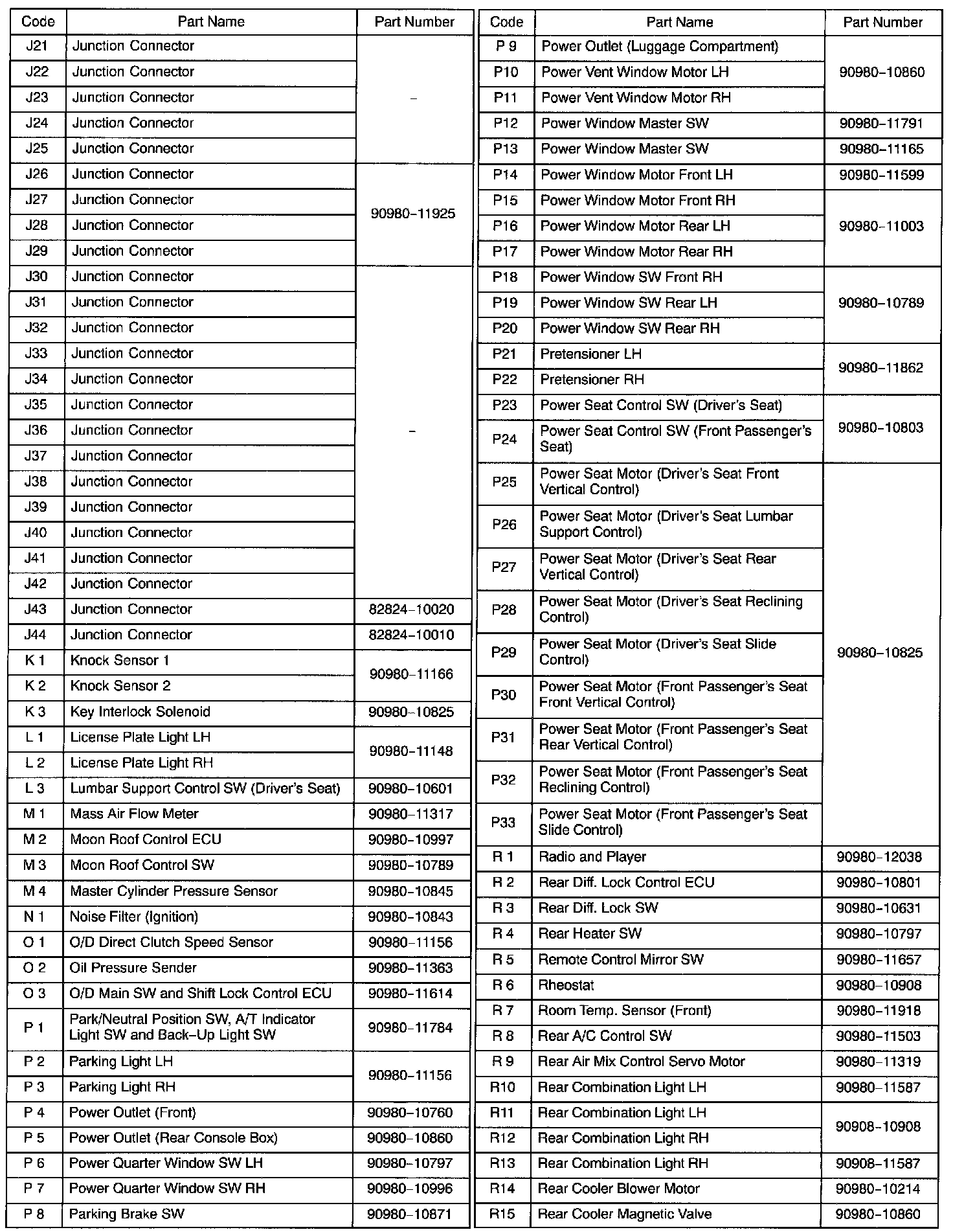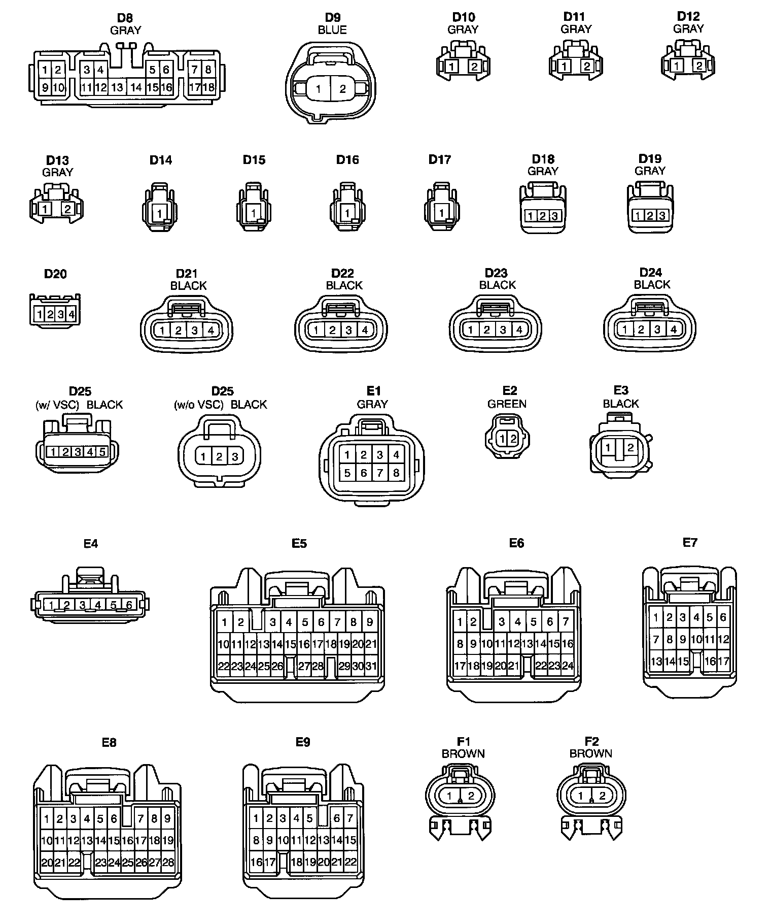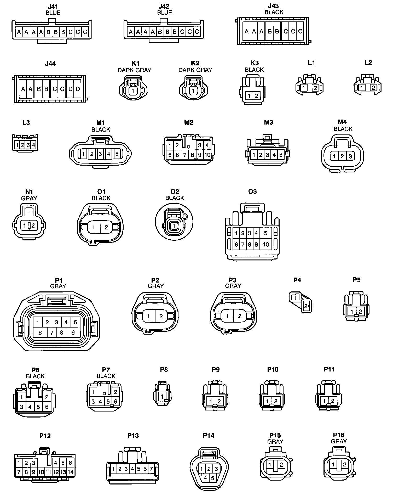 NOTE: Not all of the above part numbers of the connector are established for the supply. In case of ordering a connector or terminal with wire please confirm in advance if there is supply for it using "Parts Catalog News" (published by Parts Engineering Administration Dept.).